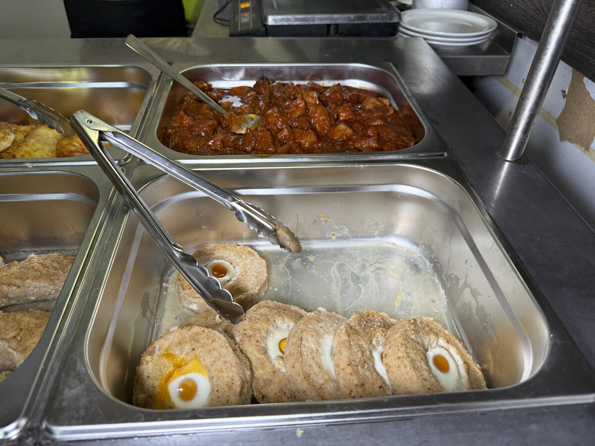 Называйте как хотите: кафе, бистро, котлетный шведский стол, но на деле частная столовая с завтраками и обедами. Пару зим назад на этом месте жила кофейня, которую сейчас перепрофилировали в столовую «Бистро Сити» согласно локации, ибо тут тьма тьмущая офисов. Завтраки подают с 10:00 до 12:00, затем наступает время обеда с 12:00 и до конца рабочего дня офисных сотрудников. Попробуем с бро потрясти копилку до 12р за обед на персонажа. Время обеда, к миниатюрной линии раздачи в очередь собираются гости. Кафе на десять столов, где комфортно помещаются порядка 25 гостей, если без подсадки, для столовой это совсем мало. Супы от 3р за холодник до 4,50р, мясо от 5 до 6,50р за курицу под сыром, самый дешёвый гарнир - 2р, самый бюджетный салат из капусты - 2,50р. Цены не гос столовой, поэтому на кассе волнуюсь за 12р, смогу ли я. За один поднос еды вышло 22р, уложились по 11р. Но без компота, без хлеба, без двух супов, без четырёх котлет вместо гарниров. 1. Филе-о-фиш с яичным глазом за 5р зашё