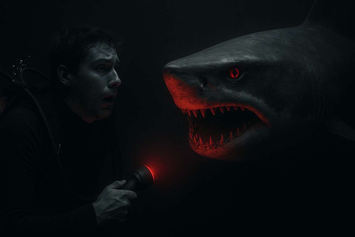 Я изо всех сил лягал воду к бортику. Каждый пузырь казался плавником, каждый блик — зубом. Поверхность казалась бесконечно далёкой, но я выбросил себя наружу, сорвал маску, захлёбываясь воздухом. Отшатнулся, не сводя глаз с воды. Гладь врала: она не пуста. Существо всё ещё здесь. И я понял холодно и ясно: оно просто ДАЛО мне уйти.