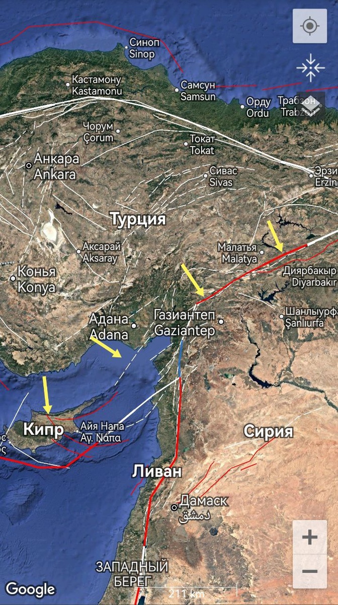 Сегодня днем трассировалась рифтовая зона от Кипра до Малатьи на уровне М6+ ===== This afternoon, the rift zone was traced from Cyprus to Malatya at the M6+ level.