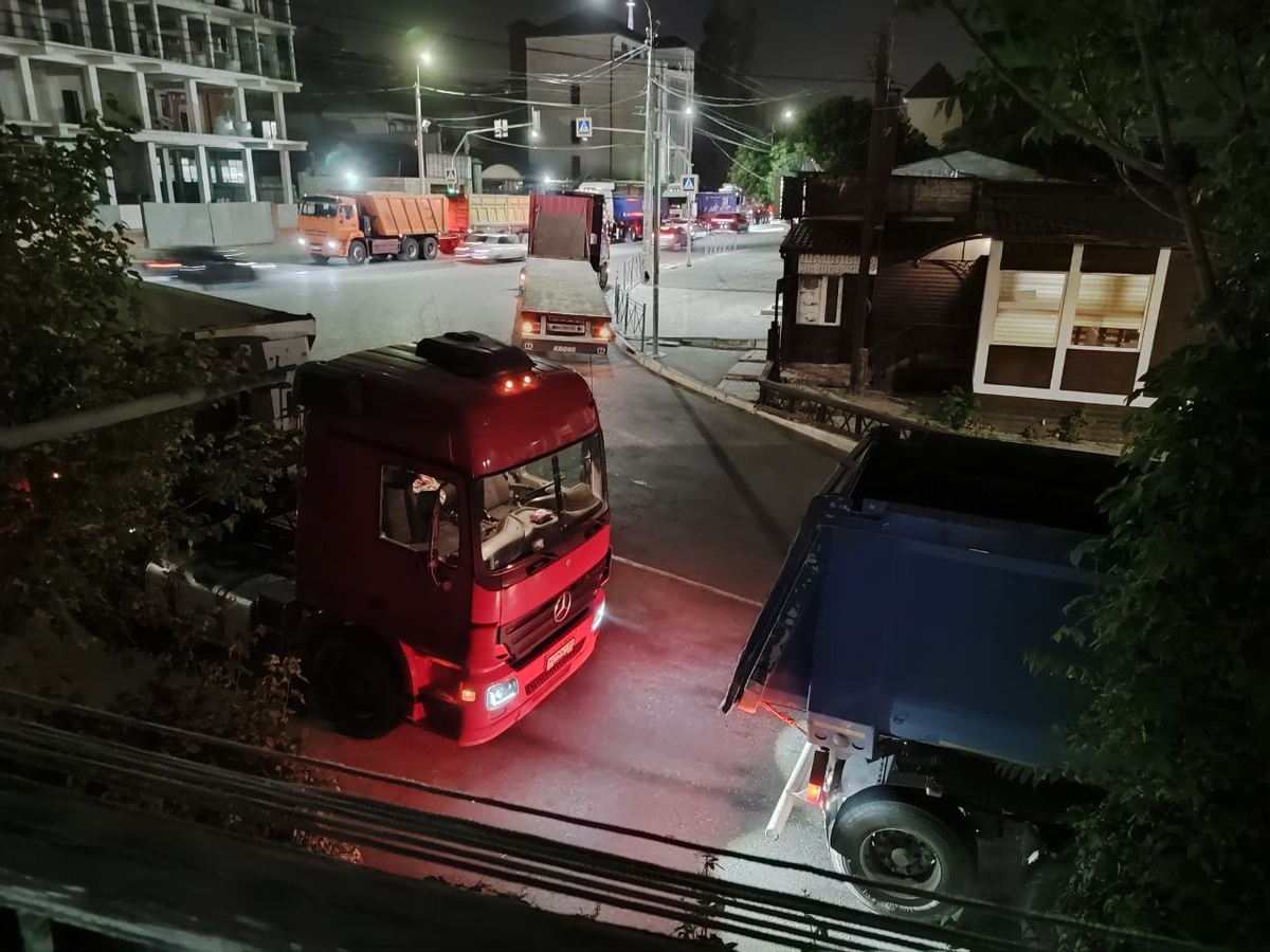 ©Прошу вас навести порядок. Махачкала, ул. Мирзабекова, д. №74, ж/д переезд. Уже полтора часа эта картина. Стоянка большегрузов порта. Полное нарушение ПДД и конституционного права жителей спального района города на отдых ночью. В ГИБДД трубку не берут. По всей видимости, у них отдых. Не пропускайте в жилую зону большегрузы порта, если на стоянке порта им нет места. Наведите порядок в диспетчерской ГИБДД! Люди должны дозваниваться, когда на лицо аварийная ситуация с нарушением ПДД." #нам_пишут Подписаться на "Черновик" 2.0 | Обратная связь: @chernovik_1_bot