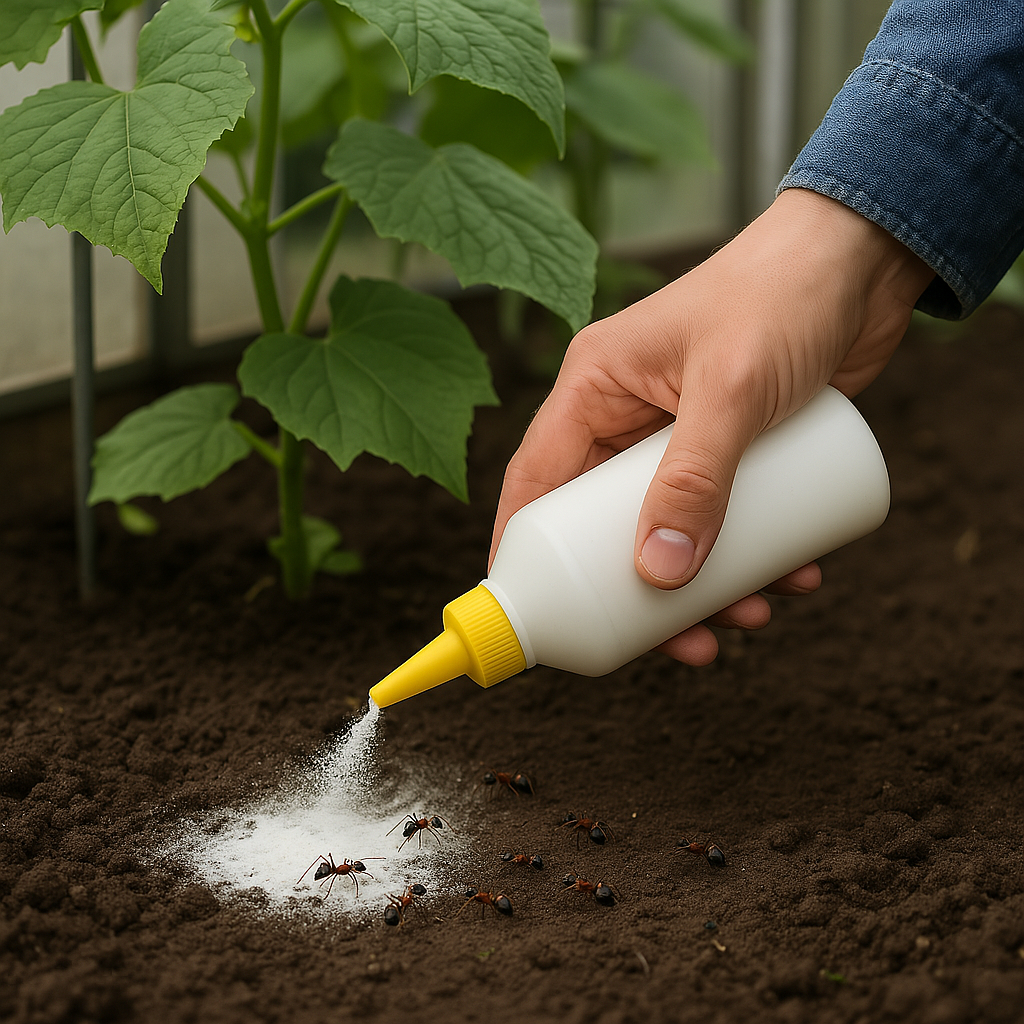 Муравьи в теплице — не просто мелкое неудобство. Они разводят тлю, повреждают корни молодых растений и мешают нормальному росту культур. Но травить их агрессивной химией нельзя — можно погубить урожай. Рассказываем, как избавиться от муравьёв безопасно и эффективно. Почему муравьи — это проблема? Как избавиться от муравьёв без вреда для растений? 1. Засыпьте ходы золой, корицей или горчицей Это натуральные отпугиватели. Насыпьте порошок прямо в муравьиные ходы и вокруг грядок. Муравьи уходят из мест с резким запахом и щелочной средой. ✅ Безопасно для растений ❗ Повторяйте процедуру после каждого полива или дождя 2. Уксус или нашатырный спирт (в умеренных дозах) Смешайте уксус с водой (1:4) и опрыскайте дорожки и ходы. Или растворите 2 ст. ложки нашатыря в ведре воды и полейте муравейник. ✅ Эффективно отпугивает ❗ Избегайте попадания раствора на листья — может обжечь 3. Борная кислота и сахар Сделайте сладкие приманки: Намочите ватные диски или кусо