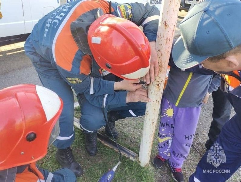 ГУ МЧС России по Камчатскому краю. Сотрудники Камчатского спасцентра МЧС России за несколько минут высвободили ребенка из ловушки. Специалисты подпиливали петлю, поливали палец водой, успокаивали напуганного