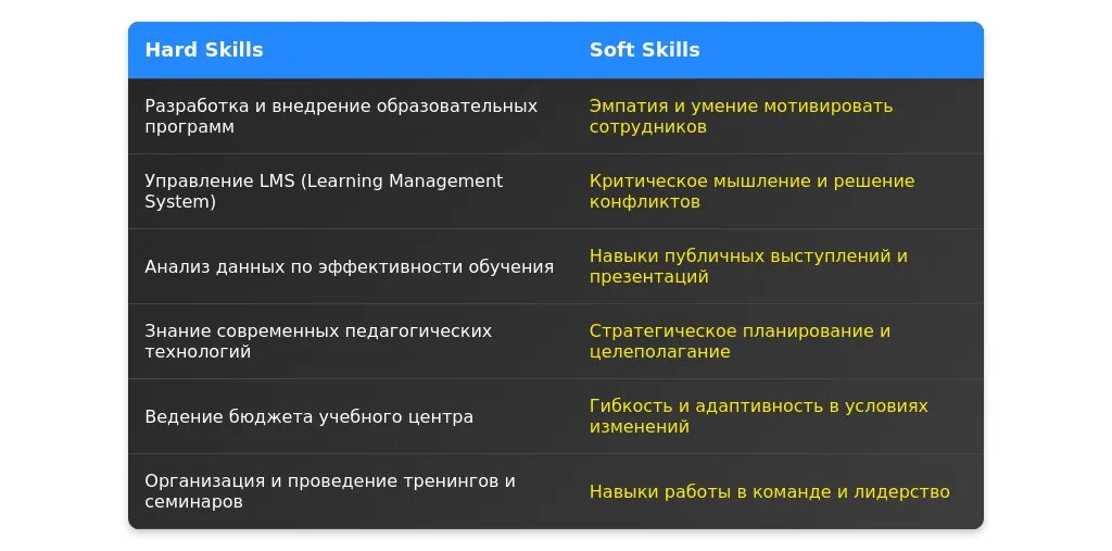 - Балансируйте между широтой навыков (управление, аналитика) и их глубиной (например, продвинутое владение LMS).