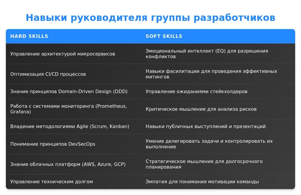 Анализ требований вакансии для "руководителя группы разработчиков"