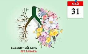 🚭 Всемирный день без табака 📌Сегодня, 31 мая, отмечается Всемирный день без табака — дата, учреждённая Всемирной организацией здравоохранения, чтобы напомнить о вреде курения и поддержать тех, кто решил отказаться от этой привычки. ‼️Почему это важно? ✅Курение ежегодно уносит миллионы жизней по всему миру. ✅Табачный дым содержит более 7 000 химических веществ, многие из которых опасны для здоровья. ✅Отказ от курения улучшает качество жизни, снижает риск сердечно-сосудистых и онкологических заболеваний, делает дыхание легче и продлевает жизнь. 🔽Сегодня отличный повод: ✔️Поддержать близких, которые хотят бросить курить. ✔️Начать заботиться о своём здоровье. ✔️Напомнить себе и другим: здоровье — в наших руках! ✨Давайте дышать свободно и вдохновлять друг друга на здоровые перемены! 💚