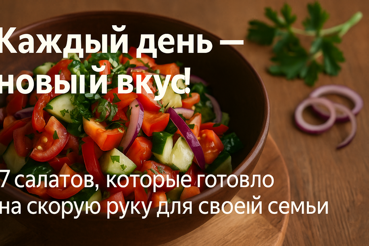 День без салата — как обед без радости. Мы с женой давно привыкли, что на столе всегда стоит мисочка чего-то свеженького. То к ужину, то просто перекусить. Расскажу вам про 7 простых, но очень вкусных салатов, которые я готовлю всю неделю — и не надоедает! После выходных хочется чего-то простого, но сытного. А этот салат — как раз то, что надо. Готовлю за 5 минут, когда все голодные и времени в обрез. Что нужно: Как готовлю: Пекинку шинкую, колбасу нарезаю соломкой. Сливаю жидкость с горошка, всё смешиваю. Добавляю майонез, горчицу, чуть перца — и готово. Солить не нужно! Быстро, вкусно, сытно. Этот салат — как весёлый взрыв красок и вкусов! Чуть азиатский, с чесночком и соевым соусом. Готовлю, когда хочется чего-то бодрящего. Понадобится: Как делаю: Все овощи режу соломкой, морковь — на корейской тёрке. Чеснок давлю, зелень рублю. Всё складываю в миску. Отдельно разогреваю масло и выливаю на специи — аромат стоит потрясающий! Добавляю уксус и соевый соус, перемешиваю. Салат готов — ос