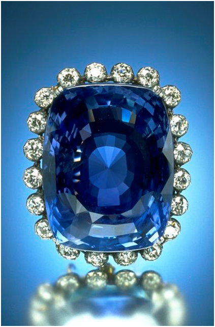 Сам сапфир был добыт в Бирме (ныне Мьянма) и куплен графиней на Шри-Ланке в 1926 г. во время ее медового месяца с Харрисоном Уильямсом. Великолепный сапфир обладает высоко ценимым глубоким синим цветом бирманских сапфиров. За красивый синий цвет сапфира отвечают железо и титан.