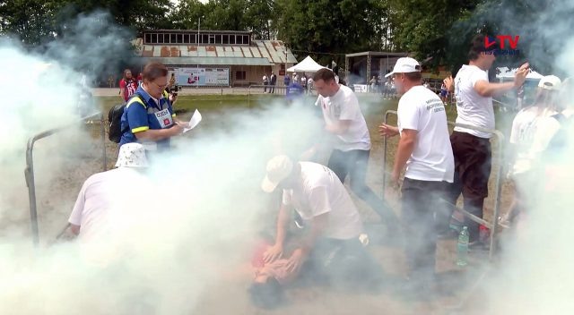 Представители различных министерств, управлений и институтов - более сотни госслужащих демонстрировали сегодня свои навыки в оказании первой медпомощи. Региональные соревнования «Сохрани жизнь» прошли в спортивном комплексе «Олимпик». Участники - команды от каждого областного органа власти. По легенде, после атаки беспилотника со взрывчаткой пострадало несколько человек, и отважные госсужащие должны оказать первую помощь всем нуждающимся. Сложность в том, что у каждого разные травмы, так что подсмотреть действия коллег не получится, нужно руководствоваться лишь собственными знаниями. Для правдоподобности пустили настоящий квадрокоптер, сымитировали взрыв и задымление, а условные пострадавшие истекали бутафорской кровью - антураж соревнований собрал много случайных зрителей. Александр Калинин – посетитель «Олимпика»: - Мы хотели с мамой на велосипедах покататься, мы приходим, а тут вот что. Меня первую помощь учили оказывать Дмитрий Маслов - заместитель губернатора Воронежской области: