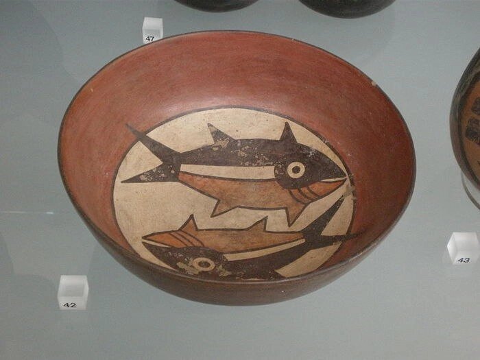 В самом сердце южного побережья Перу, на бескрайних просторах плато Наска, где песок и солнце переплетаются в затейливом танце, процветала удивительная доколумбова цивилизация — Наска. Существовавшая с II века до нашей эры до VI века нашей эры, эта культура оставила за собой не только глубокую историю, но и таинственные произведения искусства, пронизывающие время и пространство — керамику... Керамика Наска, отличается многоцветностью и необычайной стилистикой. На белом и красном фоне искусно прорисованы черные и оранжевые узоры. Удлинённые и угловатые формы посуды, придающие ей особую динамику, словно стремятся вырваться за пределы своего времени. Каждое изображение — это не просто декор, это рассказ о повседневной жизни и мифологических сущностях, обитающих в их воображении. Чем больше ты исследуешь керамику, тем яснее становятся ее магические аспекты. Изображения людей и животных, птиц и рыб, неизменно навевают мысли о том, какая связь существовала между миром людей и окружающей и