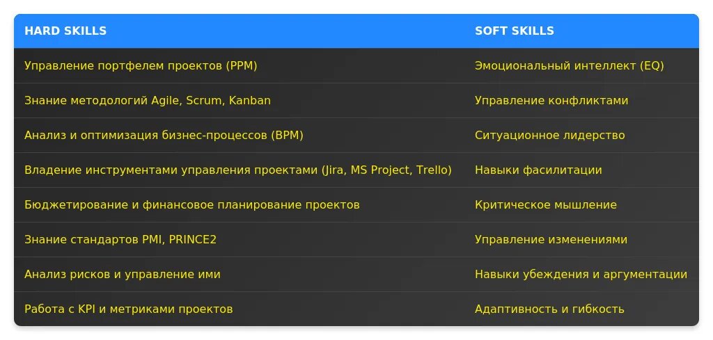 Пример 4: "Знание стандартов PMI или PRINCE2" — желательное требование, но важно для повышения конкурентоспособности.