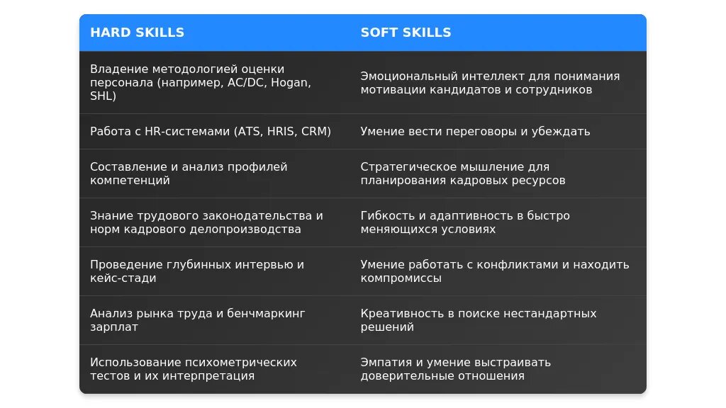 Аналитическое мышление, позволяющее эффективно оценивать компетенции кандидатов.