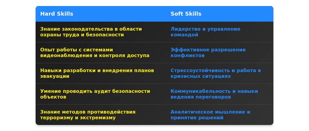 - Личные качества, важные для работы в охране (например, стрессоустойчивость, ответственность).