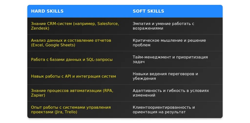 "Работа с CRM-системами, управление проектами, знание Excel на продвинутом уровне."