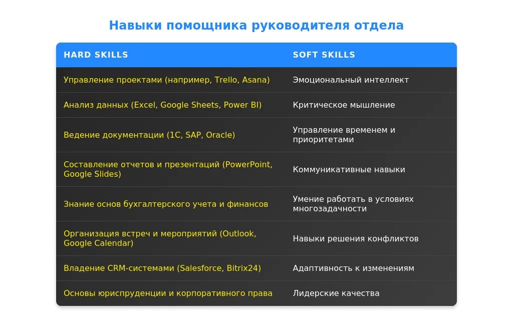 Пример 4: Фраза "поддержка руководителя в повседневных задачах" предполагает многозадачность и стрессоустойчивость.