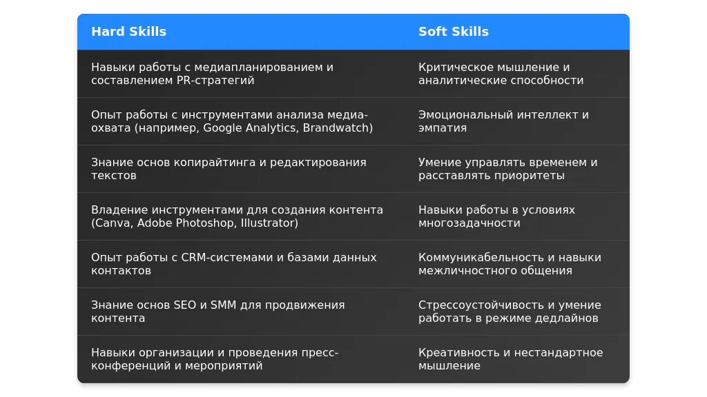 - Баланс широты и глубины: Укажите как общие навыки (например, управление проектами), так и узкоспециализированные (например, работа с Cision).