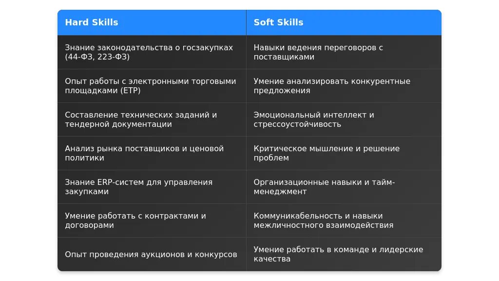 После адаптации: "Навыки ведения переговоров с поставщиками и заключения контрактов."
