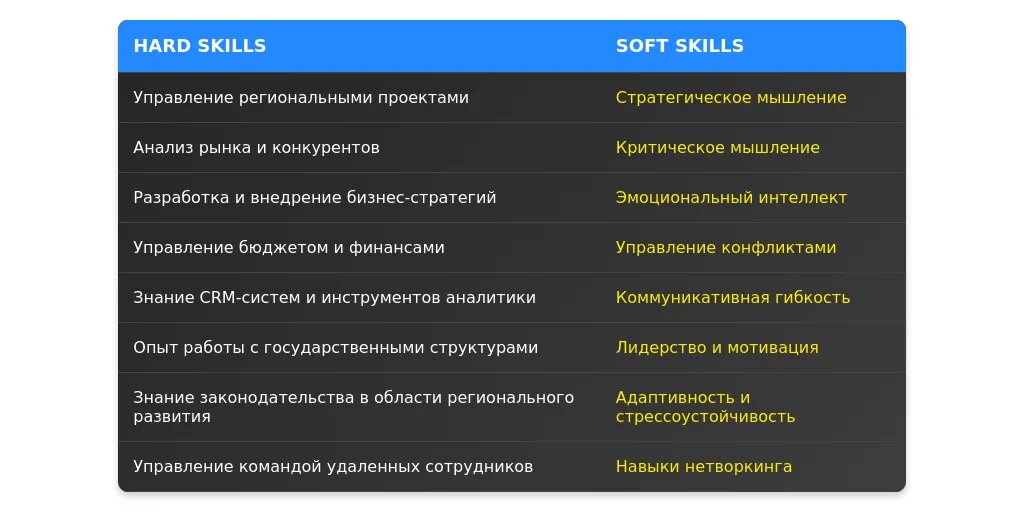 Анализ вакансии для профессии "руководитель отдела регионального развития"