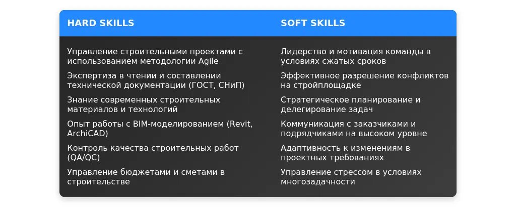 После: "Знание СНиП и ГОСТ, опыт управления строительными проектами, работа с AutoCAD и MS Project."
