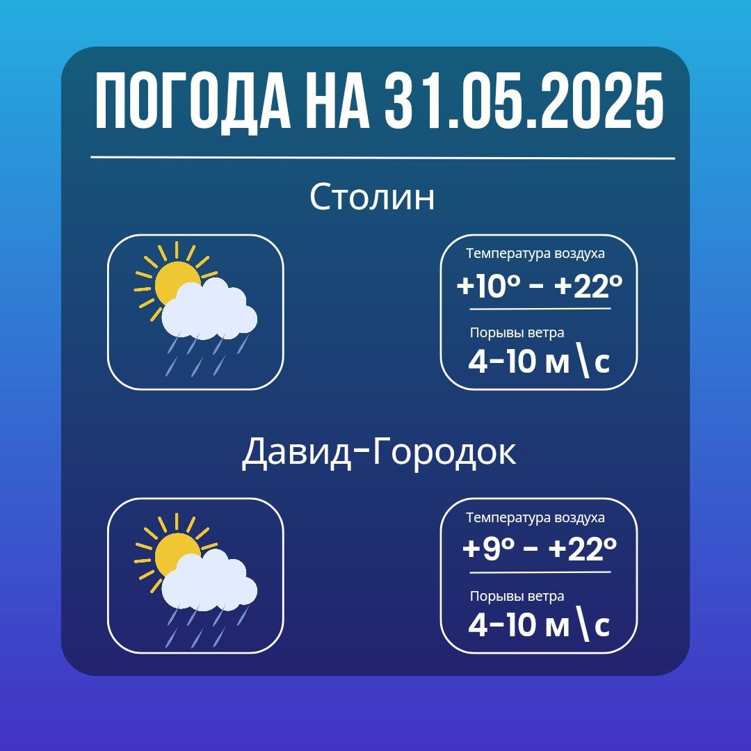 ☀️ Доброе утро! ☀️ 31 мая, суббота — ну чем не повод для радости? 😊 Тем более, завтра уже лето! 🎉 Погода сегодня местами солнечная, хотя кое-где возможны небольшие дожди. 🌦️ Самое время планировать пикники и вылазки на природу! 🌿 Но куда бы вас ни завел уикенд — не забывайте следить за главными новостями вместе с нами. 📰💙 Хороших выходных! 🌞