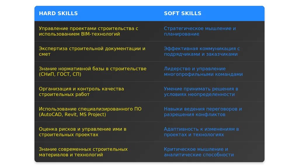 В разделе "Навыки" перегруппируйте компетенции, чтобы они соответствовали требованиям вакансии. Выделите ключевые навыки, такие как управление проектами, знание строительных технологий или опыт работы с BIM. Используйте ключевые слова из описания вакансии.
