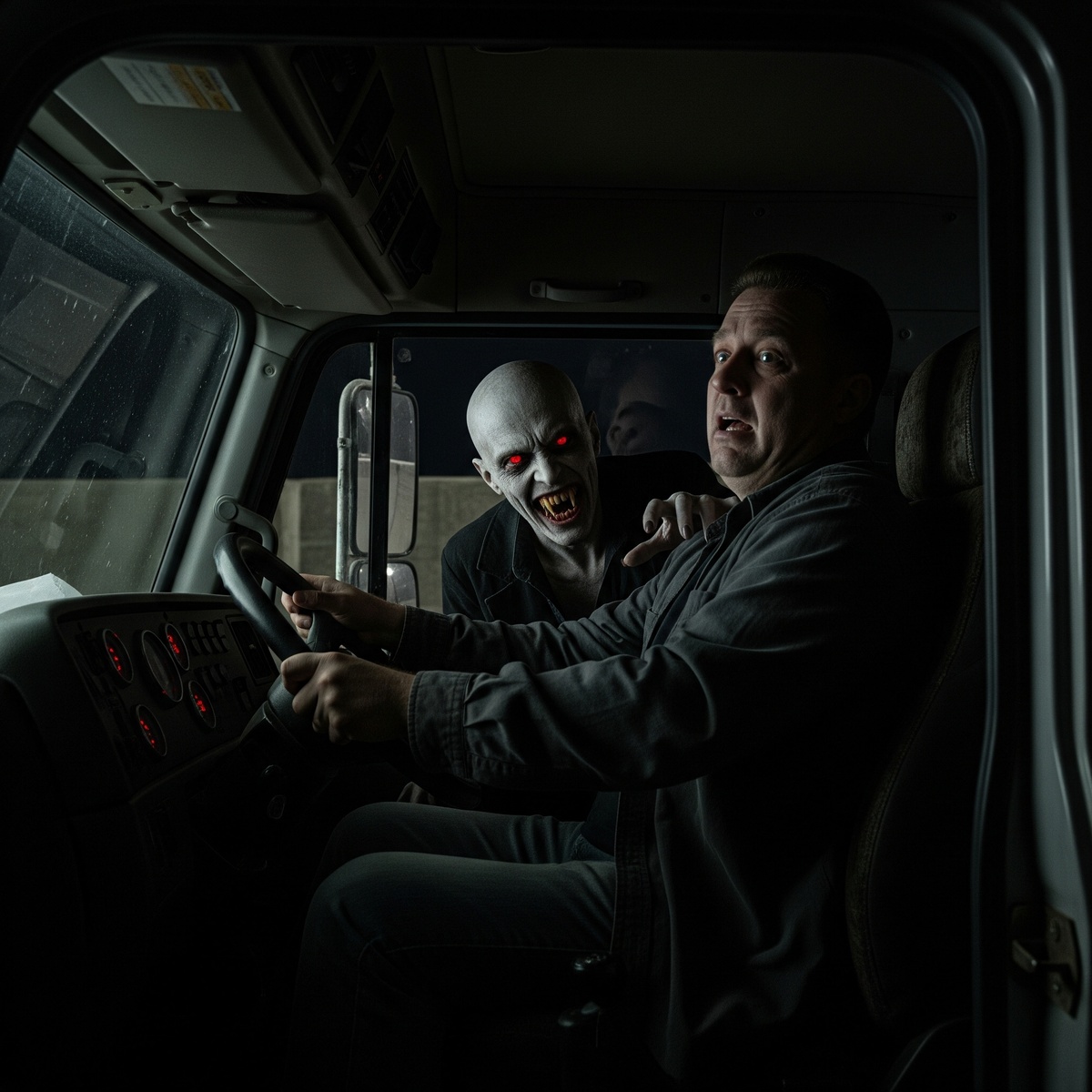 Попутчик молча кивнул и легко, почти бесшумно, скользнул в кабину. Когда дверь захлопнулась, отсекая шепот ночного леса, в кабине стало теснее, и по моей спине пробежал неприятный холодок. От незнакомца ощутимо пахло сырой землей и еще чем-то… чем-то затхлым, тревожным, отчего у меня слегка засосало под ложечкой.