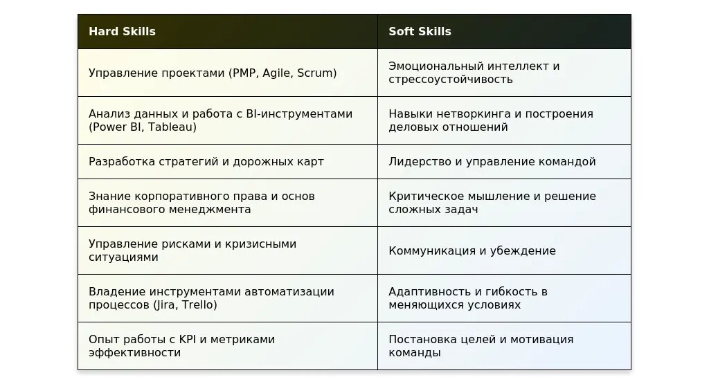 - Стратегическое мышление: разработка долгосрочной стратегии развития компании.
