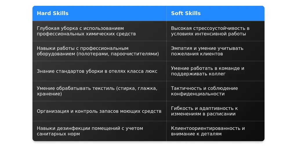 Soft skills — это личные качества, которые помогают эффективно работать и взаимодействовать с коллегами и гостями. Топ-10 важных качеств для горничной: