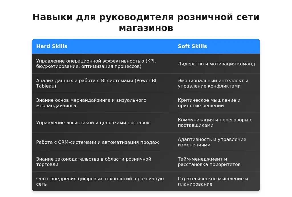- какие навыки руководителя розничной сети наиболее актуальны