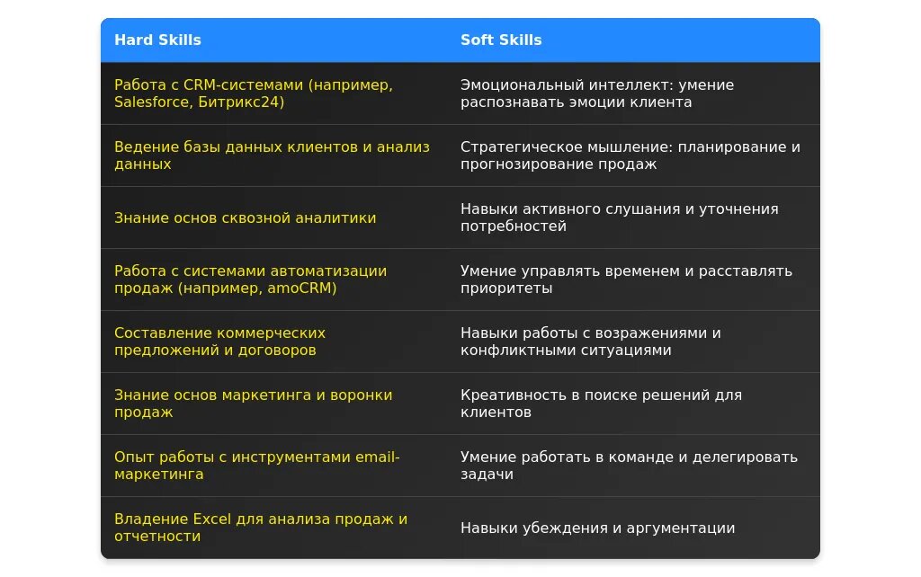 - Делайте акцент на базовых навыках, таких как работа с CRM и навыки общения.