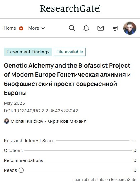 Genetic Alchemy and the Biofascist Project of Modern Europe Генетическая алхимия и биофашистский проект современной Европы. 2025.05.31.