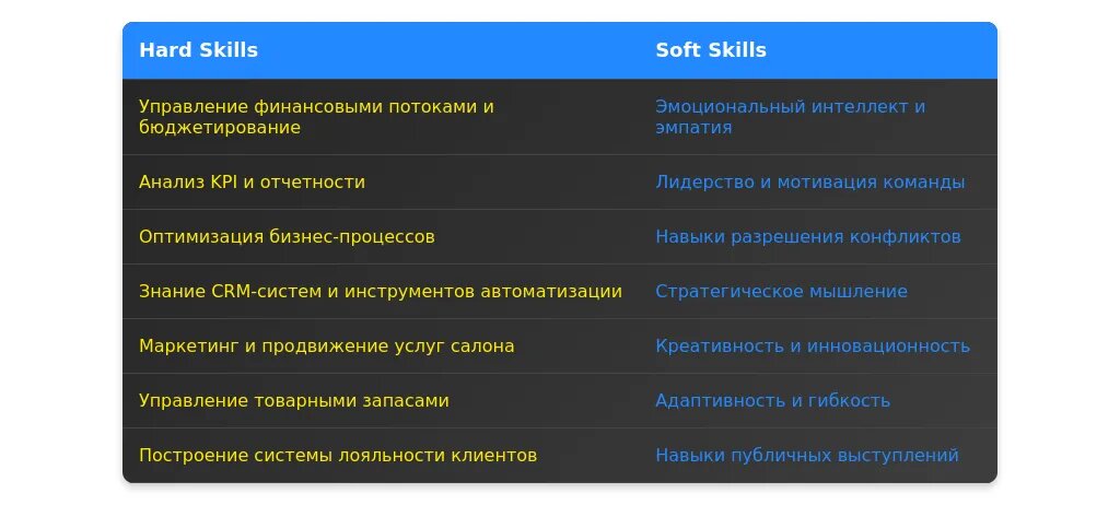 - Профессиональные достижения: Укажите успехи в управлении салоном, например, увеличение прибыли или внедрение новых услуг.