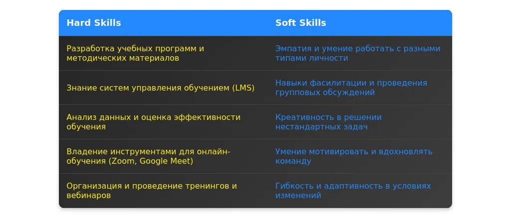 После адаптации: "Управление командой, работа с LMS-системами, организация образовательных мероприятий."