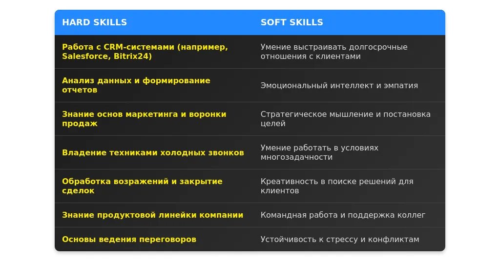 После: "Работа с CRM, навыки ведения переговоров, достижение KPI, знание английского на уровне Intermediate."