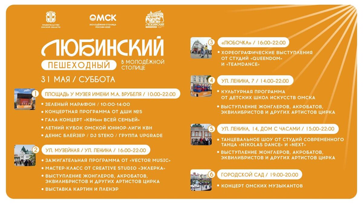 Афиша Пешеходного Любинского на выходные Сразу выкладываю 2 карточки с подробностями по локациям для удобства. Там и КВН и танцевать на сцене будут, и сами спляшем, и детей развлекут, и в керлинг поиграем. В общем и целом, насыщенные выходные есть и будут, слава Молодежной столице! Гип гип Ура🎉 #афишаомск #молодежнаястолица2025 Волк Заотдых
