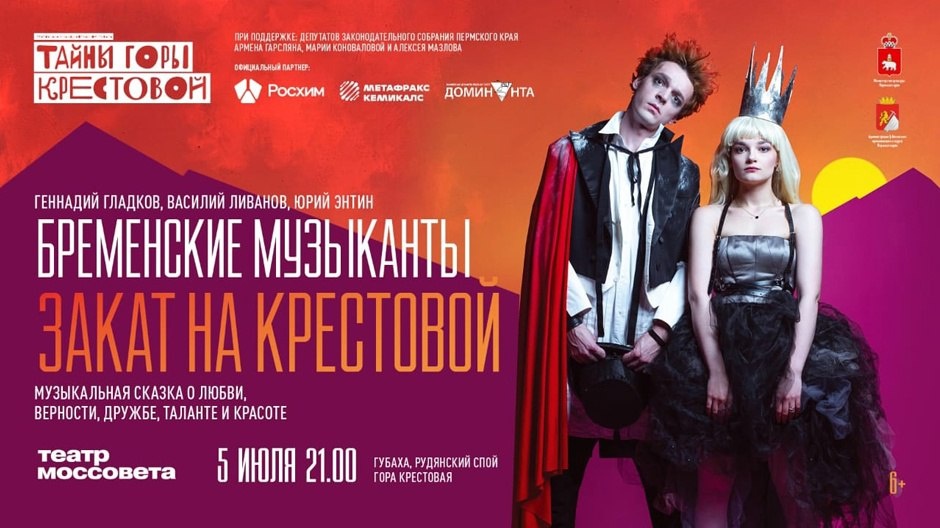 «Бременские музыканты»: сегодня, 31 мая, на сцене Театра Моссовета, а 5 июля на уникальной площадке под открытым небом. Подробности о фестивале «Тайны горы Крестовой» и билеты по ссылке