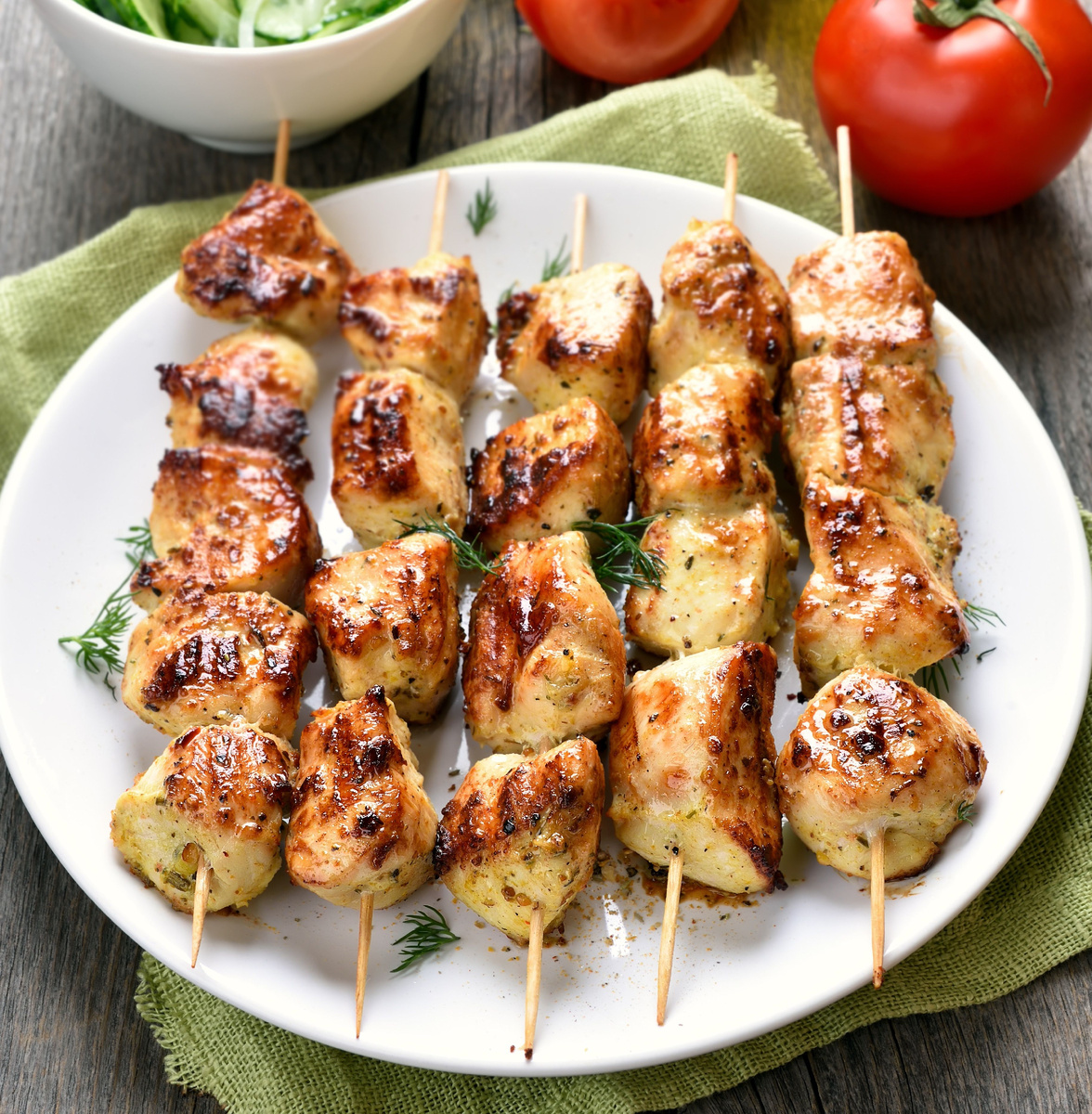 ШАШЛЫК КУРИНЫЙ ИЗ ФИЛЕ ГРУДКИ СЛИВОЧНЫЙ С ЗЕЛЕНЬЮ.