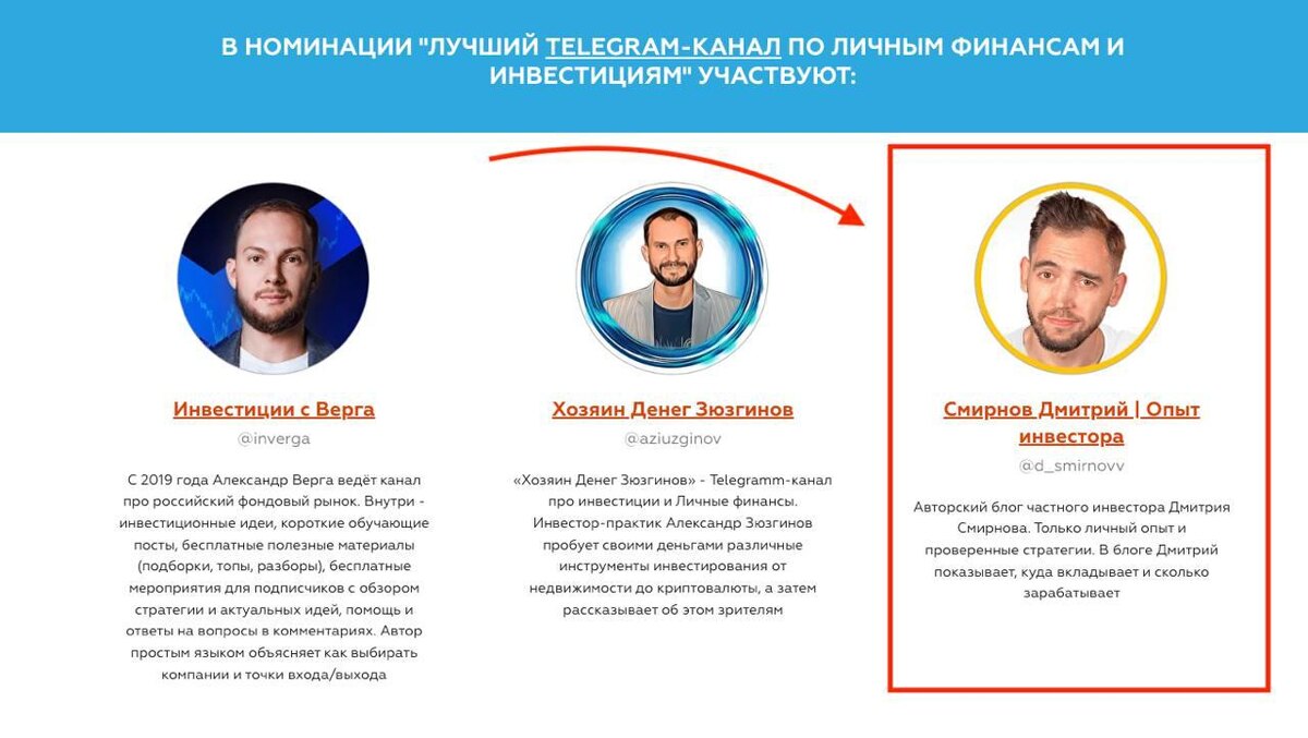 Меня номинировали на премию на одной из самых крутых конференций по недвижимости в России 🔥 Несколько лет подряд я хожу на конференцию Private Money, встречаюсь там со знакомыми и ищу новые партнерства. Приятно было увидеть, что организаторы тоже следят за разными инвестиционными блогерами и некоторых выделяют отдельно. Я участвую сразу в нескольких номинациях, однако больше всего хочется победить в номинации "Лучший инвестиционный ресурс по инвестициям", она в самом конце на сайте (это если вы вдруг решите поддержать меня своим голосом 🙂). Как вы понимаете, я точно планирую присутствовать 7-8 июня на конференции, чтобы не только узнать, забрал я награду или нет, но и чтобы узнать лучшие стратегии рынка недвижимости. Планируются не только классные спикеры и новые проекты, но еще и закрытые менторские гостинные, инвест туры и матермайнды. В общем, много практики, а это мы любим. Если захотите придти, то купить билет можно по ссылке, а по промокоду SMIRNOV получите скидку в 15%.