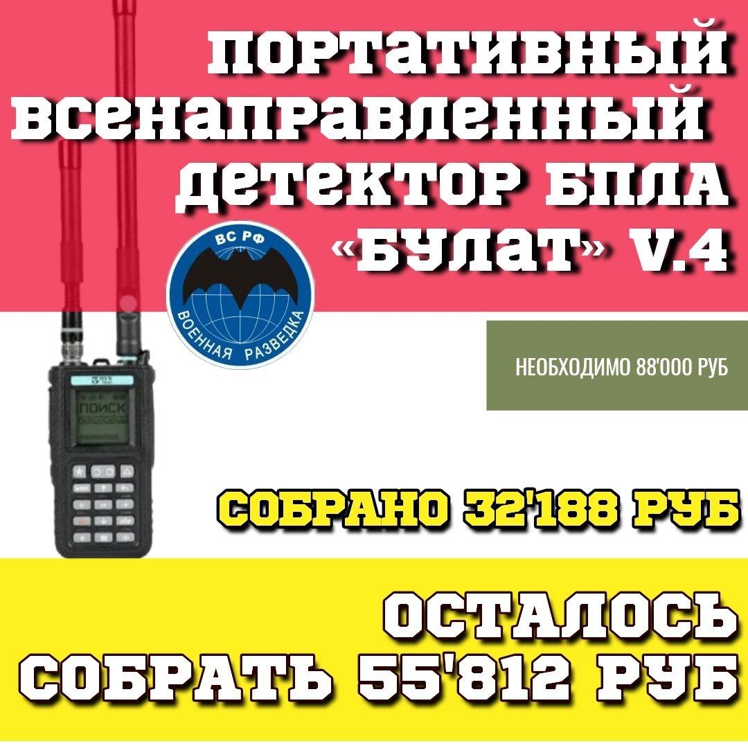 С последним весенним днём, друзья!!! Продолжаем сбор на детектор БПЛА "Булат". Хотим обратить ваше внимание, что время изготовления "Булата"+ доставка в среднем займут 2 месяца. Наша задача-как можно скорее собрать нужную сумму и внести 100% предоплату, чтобы начали его собирать. Итак, продолжаем сбор на ✅ Детектор БПЛА "БУЛАТ" - 1 шт. 📌Сумма к сбору - 88'000 руб. 🔺Собрано - 32'188 руб. 🔺Осталось собрать - 55'812 руб. Поддержите, пожалуйста, сбор, друзья! Детектор «Булат» предназначен для обнаружения и идентификации «самых популярных» моделей БПЛА. "БУЛАТ" - это спасенные жизни наших бойцов. 🙏 Любую посильную сумму можно перевести на номер карты 💳2202208188194204 или по номеру телефона 📞+79530562233 Получатель - Светлана Владимировна Л. (Сбербанк) #уралсвоихнебросает #вместемысила #работаембратья #победабудетзанами #УралСвоихНеБросает #уУралаНеСвоихНет
