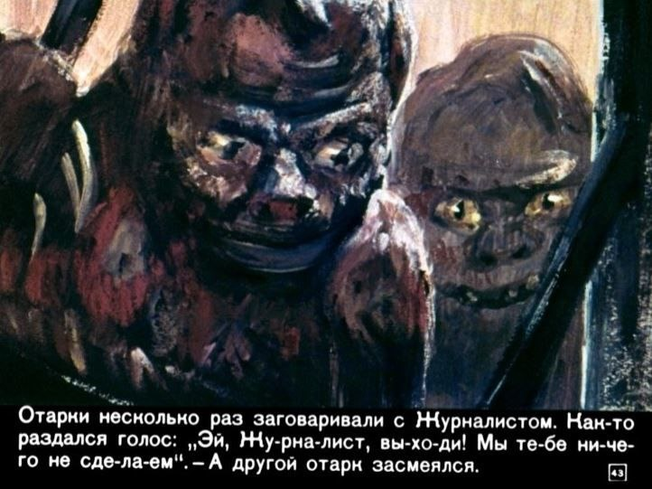 Отарки блестяще умеют в запугивание, понимают концепцию заложничества и вообще, если не знать, что написано в СССР 60-х, можно подумать, что автор пишет про горячие точки наших дней, то ли Таджикистан 90-х, то ли Сирия 2025, то ли Косово нулевых. И все это очень убедительно, потому что максимально обыденно. Никаких спецэффектов, самый страшный предмет —- СВУ, единственный наличный герой-одиночка сам понимает, что он девиация и ему конец. Нет даже никакого инфернального размаха как в Аушвице. Тебя несомненно съедят, но тихо и в уголке.