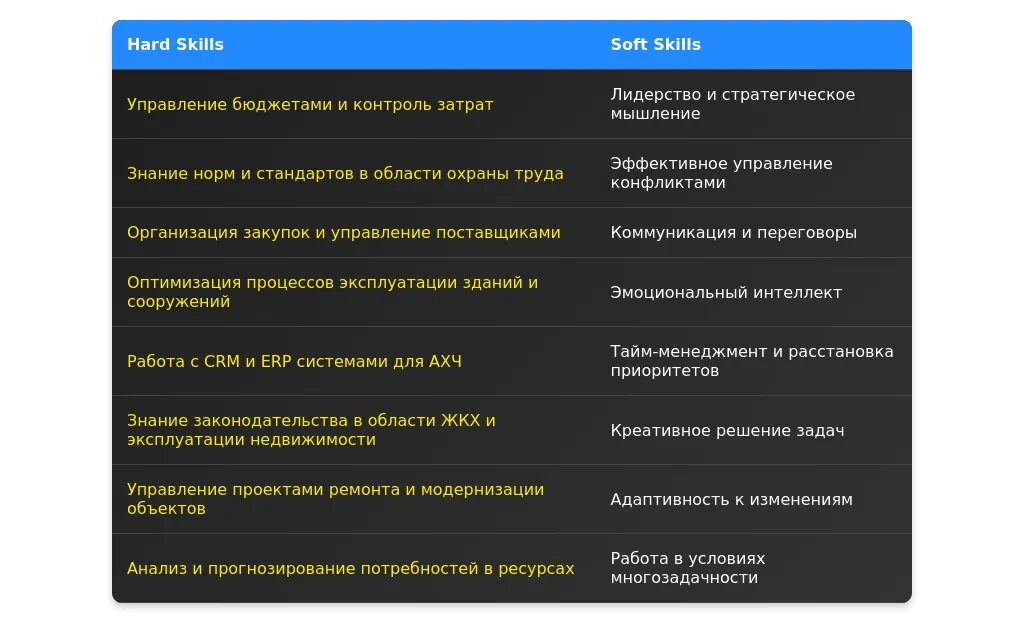 Для руководителя АХЧ важно показать свою компетентность через профессиональные профили и достижения.