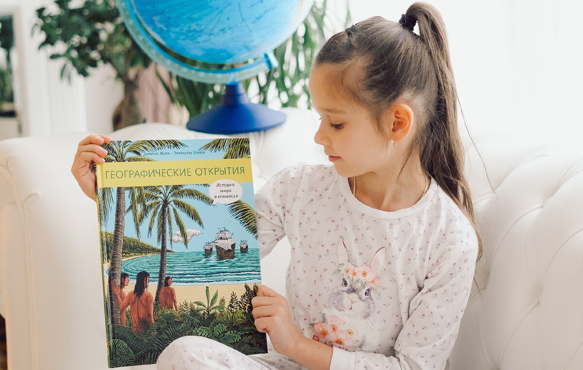 Современному ребенку сложно представить, будто когда-то люди считали, что Земля не круглая, а плоская, и у нее есть край, с которого можно упасть. В давние времена люди не знали, сколько существует континентов, не знали даже, что находится за океаном, который называли "большой водой". Есть ли там земля? Кто там живет? С развитием мореплавания наши предки получили ответы на эти вопросы, а школьник может узнать об этом из исторического комикса "Географические открытия". Эта книга отправит юного читателя в большое увлекательное путешествие с европейцами, которые искали морской путь на Восток в Индию, а случайно открыли Американский континент. Морские приключения под командованием самого Колумба, встреча с туземцами и быт индейцев, жизнь на корабле и устройство судна, впечатления от неведомых земель захватят ребенка с головой - его будет за уши от книги, да и от всей серии "История мира в комиксах" не оттянуть. Мы выбрали несколько занятных фактов из книги, которыми вы можете удивить ваших