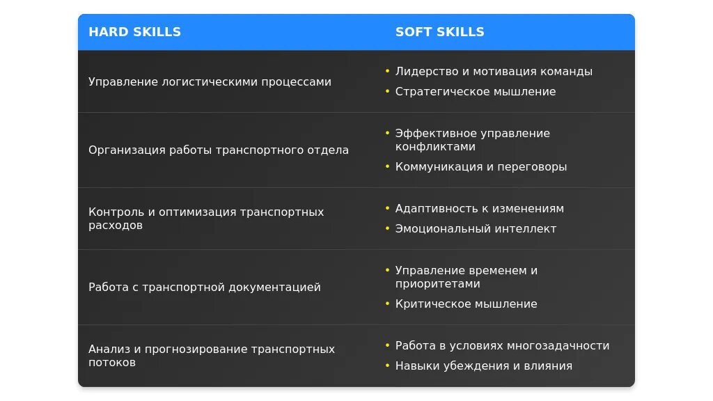 Анализ требований вакансии для профессии "начальник транспортной службы"