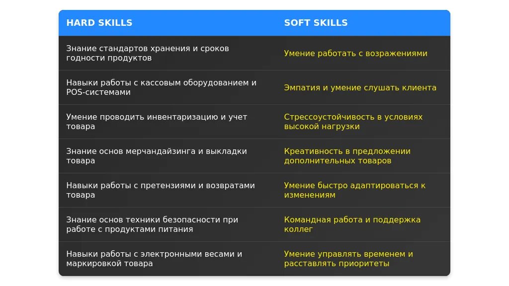 Личные качества важные для продавца продуктов