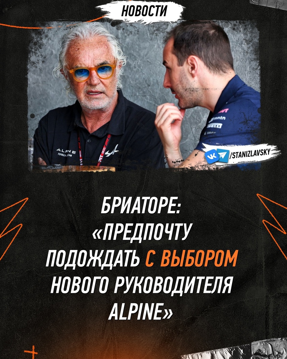🏎️ Исполнительный директор Alpine Флавио Бриаторе заявил, что предпочёл бы немного подождать, прежде чем окончательно определиться с заменой ушедшему руководителю команды Оливеру Оуксу. 💔 Оукс покинул должность руководителя команды Alpine в начале месяца по личным причинам, что привело к очередной перестановке в руководстве. Бриаторе временно взял на себя обязанности Оукса, но команда продолжает поиски постоянной замены. 🗣️ «Мы ищем подходящего человека. Пока ничего не изменилось. Мне жаль Олли, у нас были хорошие отношения. Он был хорошим руководителем, но принял решение уйти. Мы хотим сделать правильный выбор, поэтому я предпочитаю подождать немного. Как только примем решение, мы сообщим об этом». 🔍 Бриаторе также отметил, что интерес к вакансии есть, особенно учитывая изменения в статусе команды. В 2026 году Alpine перейдёт в статус клиентской команды в рамках нового технического регламента. 💬 «Нам нужен человек, который разбирается в деле, будет частью команды. Я знаю нескольк