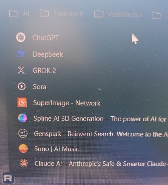 🔗 Нейросети, которыми я пользуюсь почти каждый день Закрепил их в браузере для быстрого доступа. Делюсь с вами – может пригодиться! ChatGPT – универсальный помощник на все случаи жизни: от генерации текстов до кода и идей. DeepSeek – продвинутый ИИ, полезен для программирования и технических задач. GROK 2 – ИИ от X (ex-Twitter) Илона Маска. Работает прямо в X, если у вас подписка Premium+. Подходит для быстрых ответов и анализа новостей. Sora – инструмент от OpenAI для генерации видео по текстовому описанию. SuperImage – нейросеть для генерации изображений. Spline AI – генерация 3D-объектов и сцен с помощью ИИ. Удобен для дизайнеров и визуализаторов. Genspark – ИИ-поисковик нового поколения. Suno – создание музыки с помощью ИИ. Claude AI – ИИ от Anthropic. Отличается «мягким» стилем общения, хорошо подходит для глубоких аналитических запросов. 💬 А какими ИИ вы пользуетесь в своей работе? Пишите в комментариях — делимся опытом и новинками!
