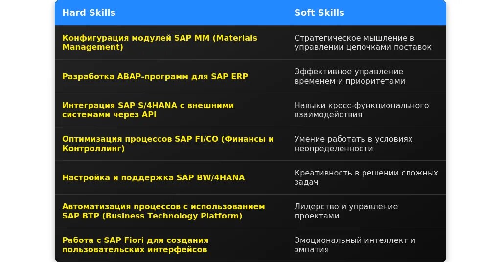 Отсутствие подтверждения soft skills. - Как проверить актуальность навыков: Изучите требования вакансий и последние тренды в SAP-экосистеме.