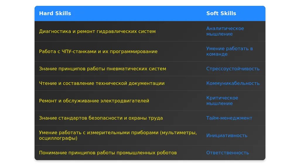 После: Знание программ для диагностики оборудования, работа с гидравлическими системами, анализ технической документации.