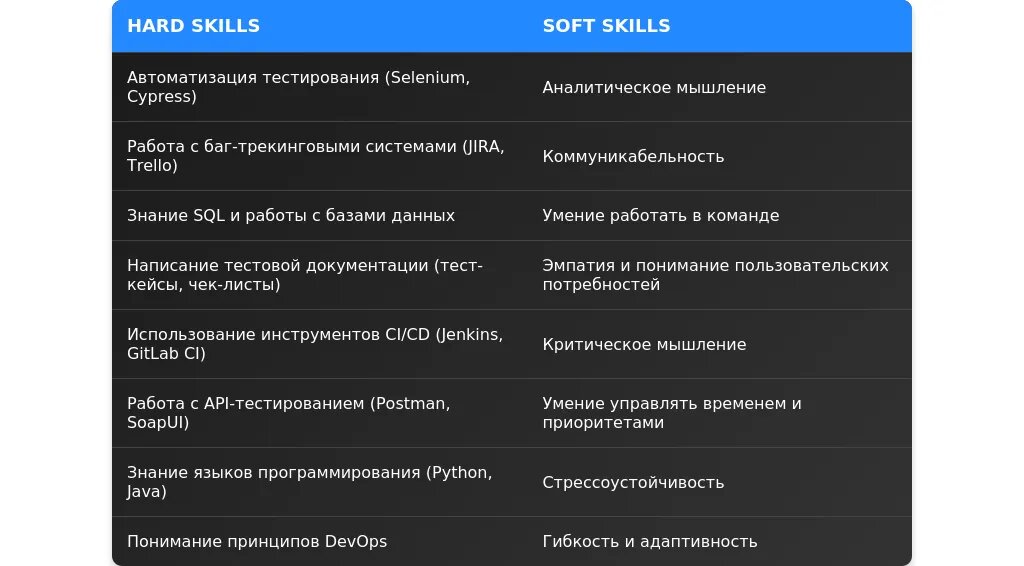 Анализ вакансии для инженера по тестированию ПО