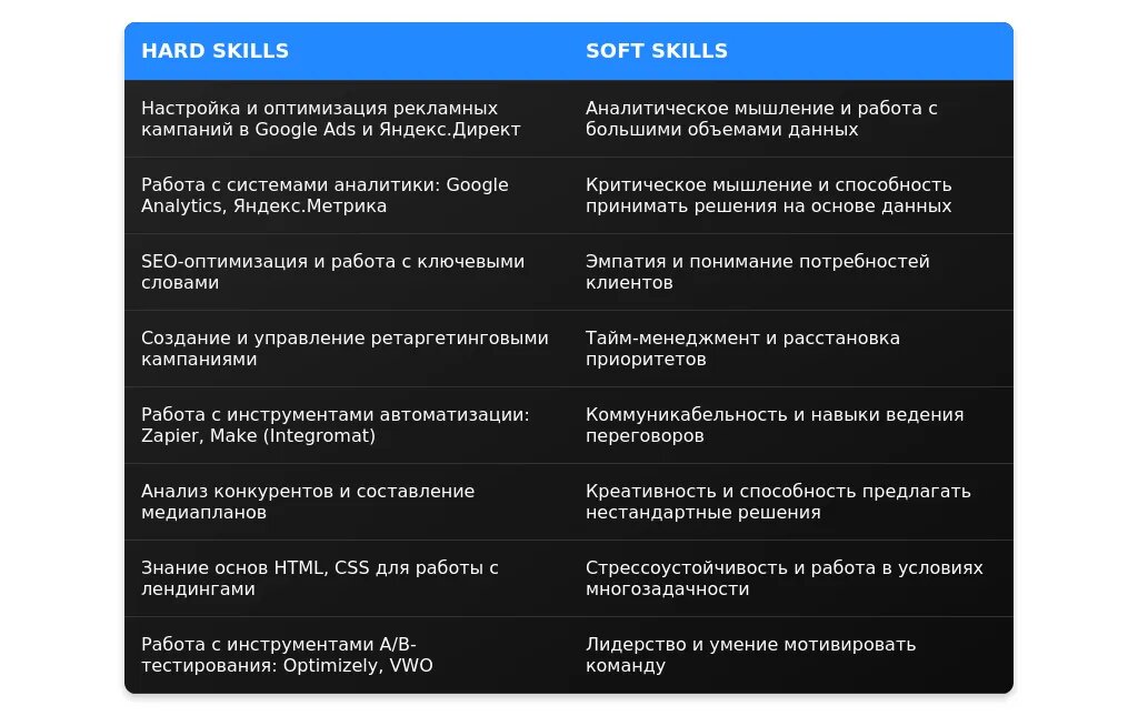 - Укажите базовые технические навыки (например, Google Ads, аналитика)