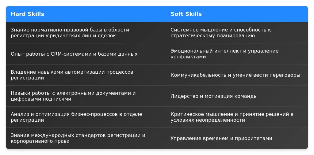 Личные качества (soft skills) играют ключевую роль в управлении командой и выполнении задач. Топ-10 важных soft skills для руководителя отдела регистрации: